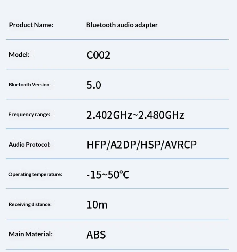 Product Name: Bluetooth Audio Adapter
