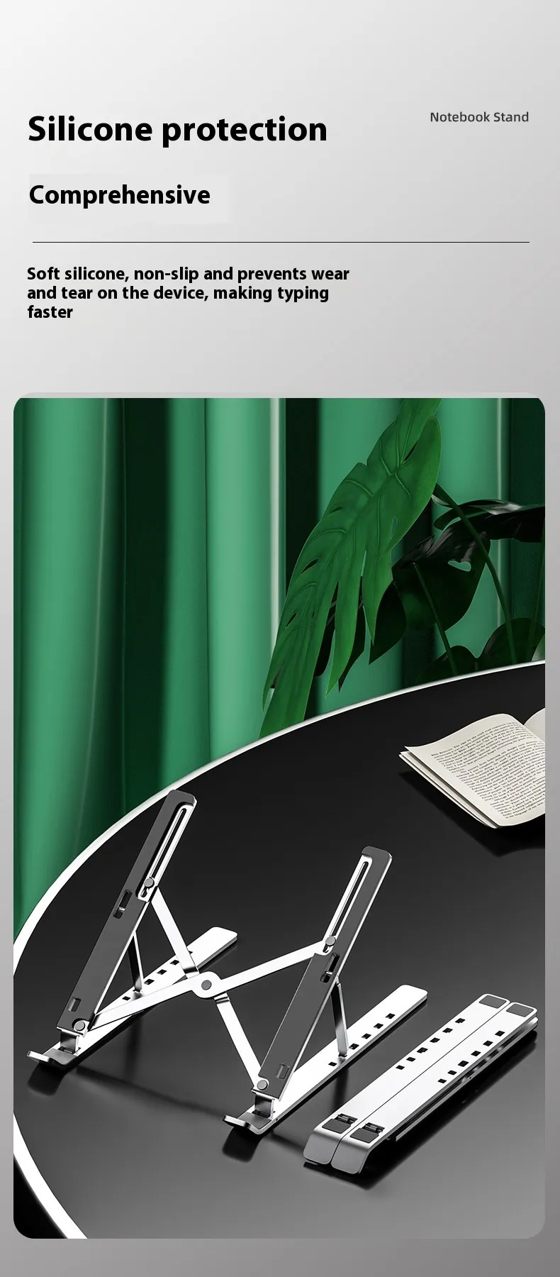 Color: 18-inch aluminum alloy notebook stand [Silver-ordinary], 18-inch aluminum alloy notebook stand [black-ordinary], 16-inch aluminum alloy notebook stand [Silver-ordinary]], 16-inch aluminum alloy notebook stand [black-ordinary], 18-inch aluminum alloy notebook stand [Silver full silicone], 18-inch aluminum alloy notebook stand [black full silicone], plastic white, black, plastic powder