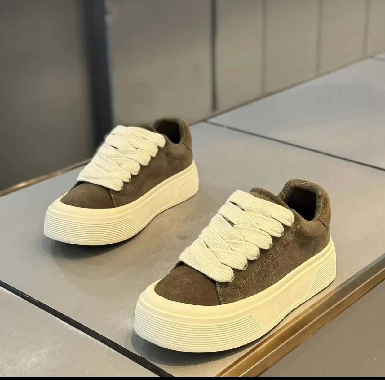 Step up your style with the Elevation Board Shoe. This new Spring/Autumn essential features a premium leather-look surface, comfortable low-cut help, and secure lacing. The subtle thick sole offers a comfortable lift, making these flat shoes perfect for casual wear while adding a fashionable heightening effect.