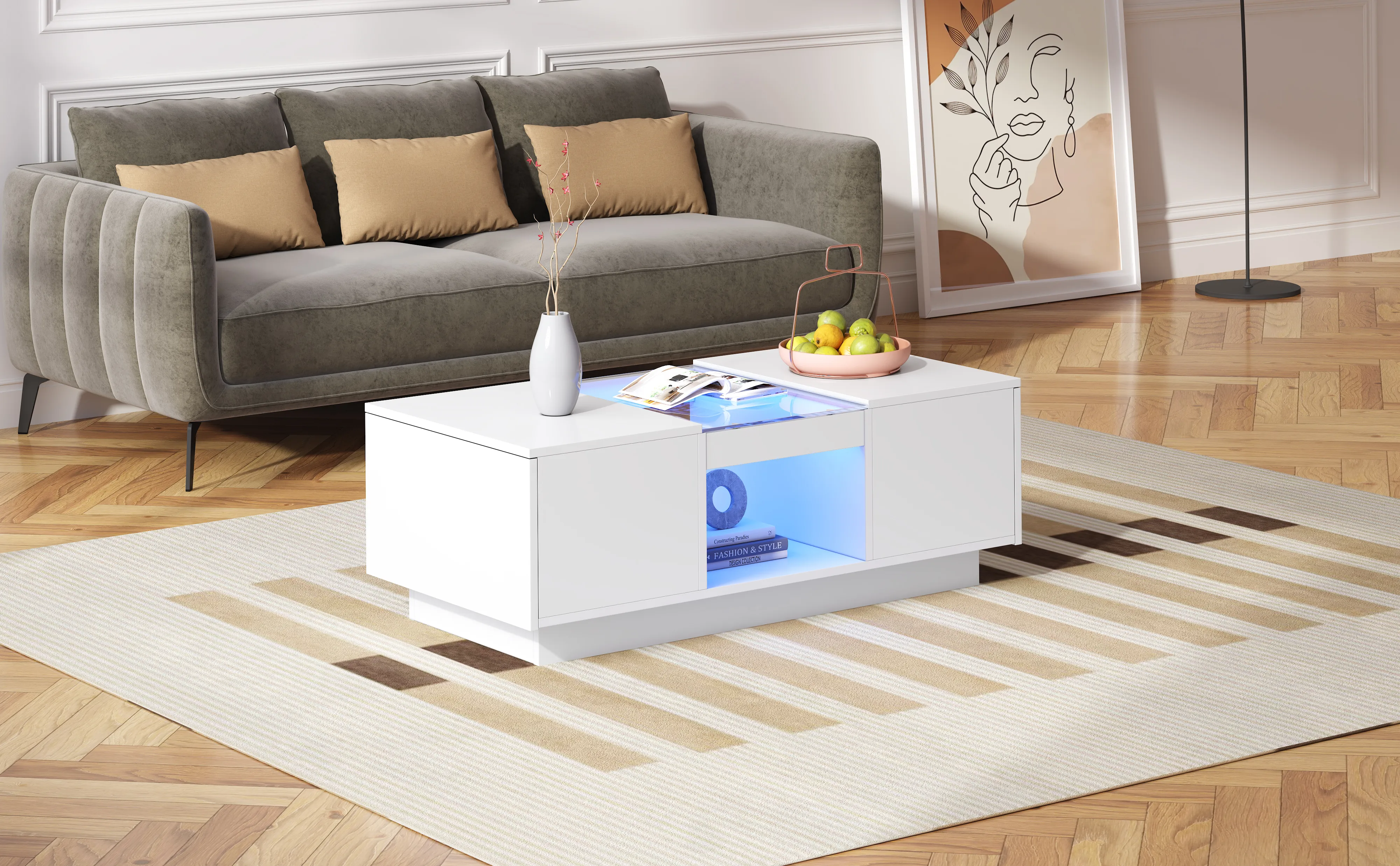 Product Name:LED Coffee Table for Living Room, Modern Coffee Table with Storage with LED Lights, 2 Tiers and 2 Drawers, Large Living Room Center Tables White
