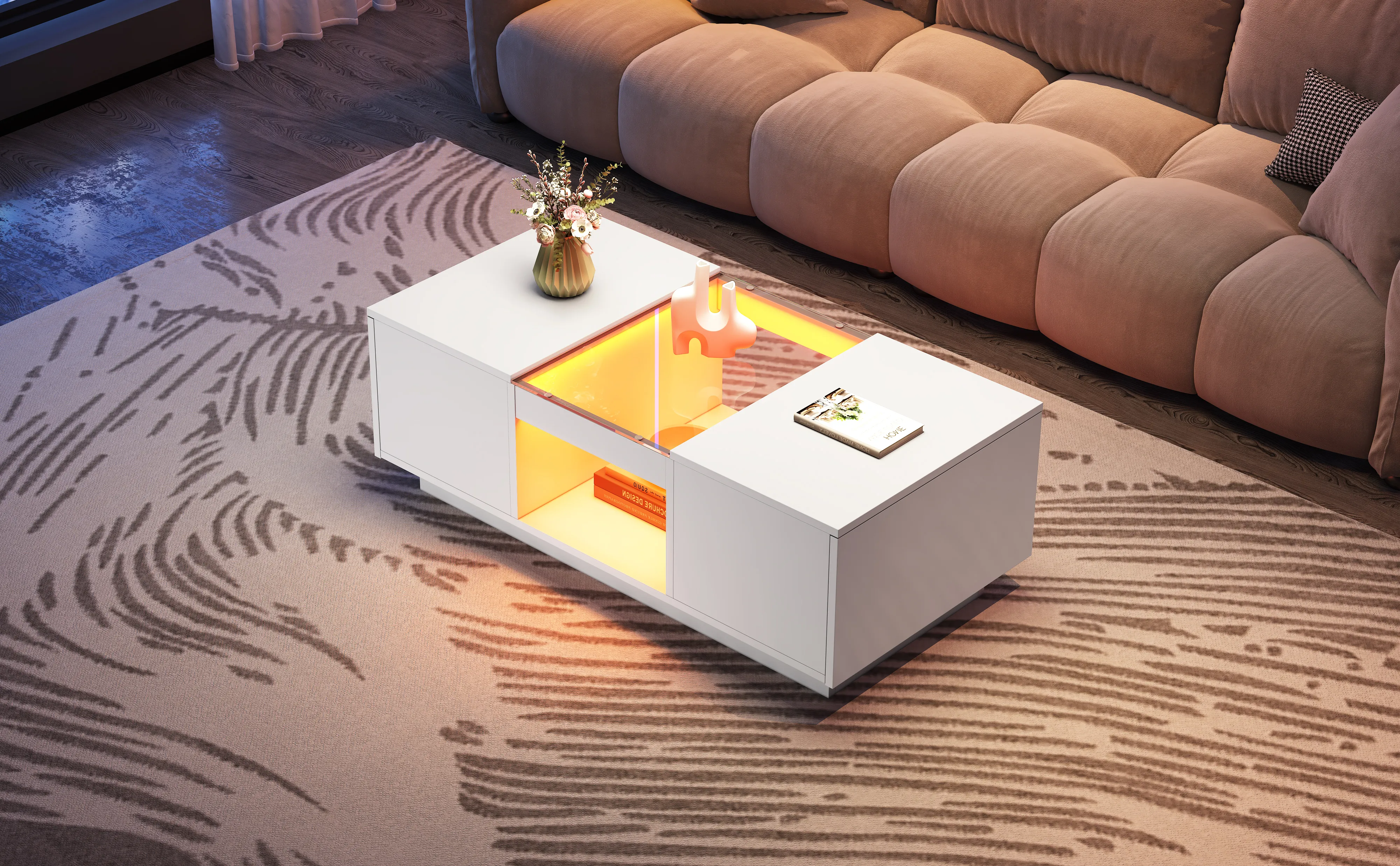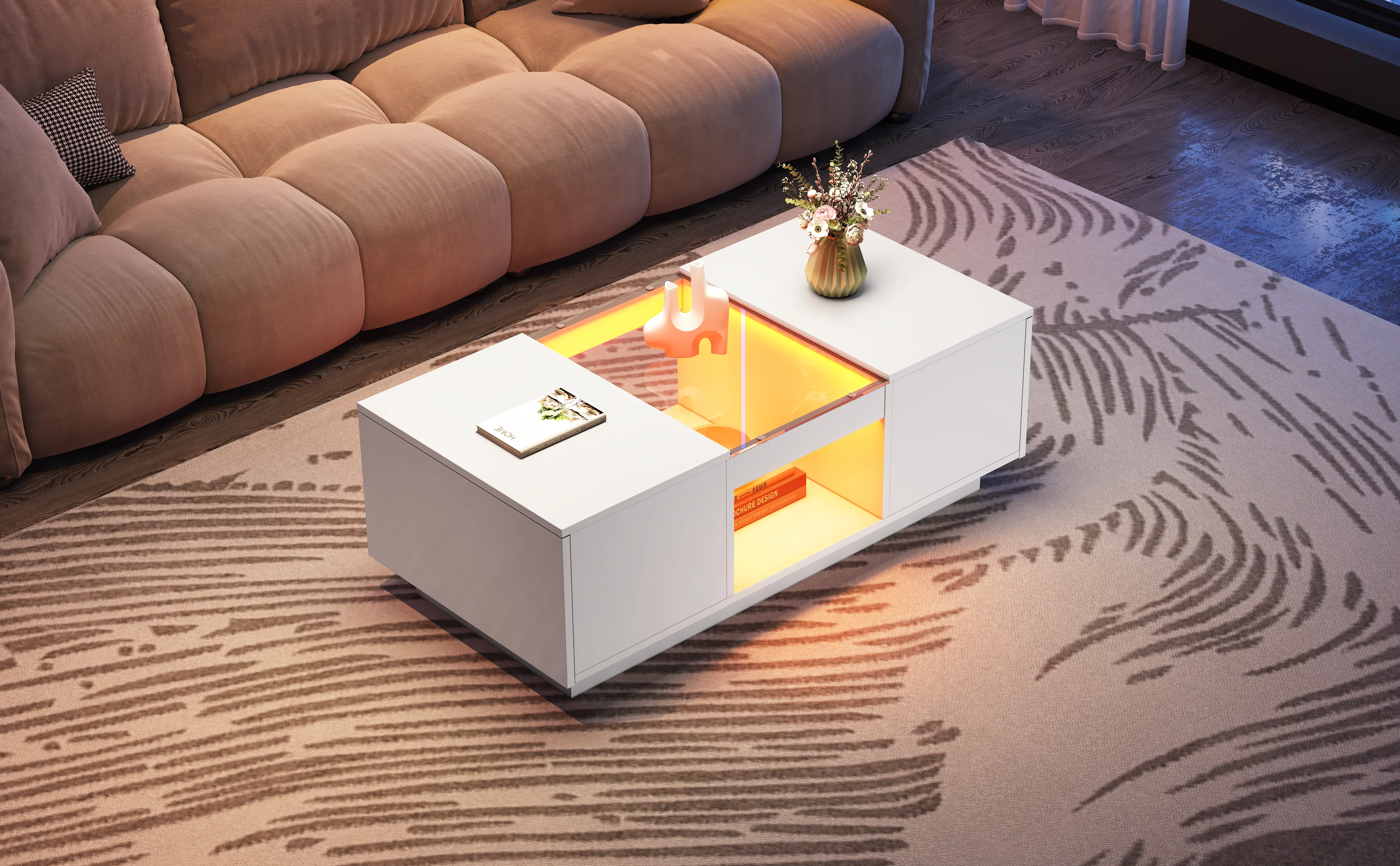 - Elevate your living room decor with the Stylish and Innovative LED Coffee Table. This eye-catching piece stands out from traditional coffee tables with its unique LED lighting, offering a variety of colors and modes to create a mesmerizing visual experience and set a romantic, relaxing ambiance.